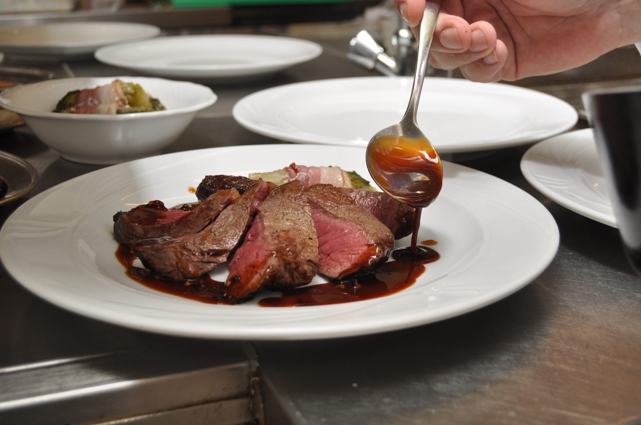 - Gebakken tournedosGeserveerd met gorgonzola saus of kruidenboter